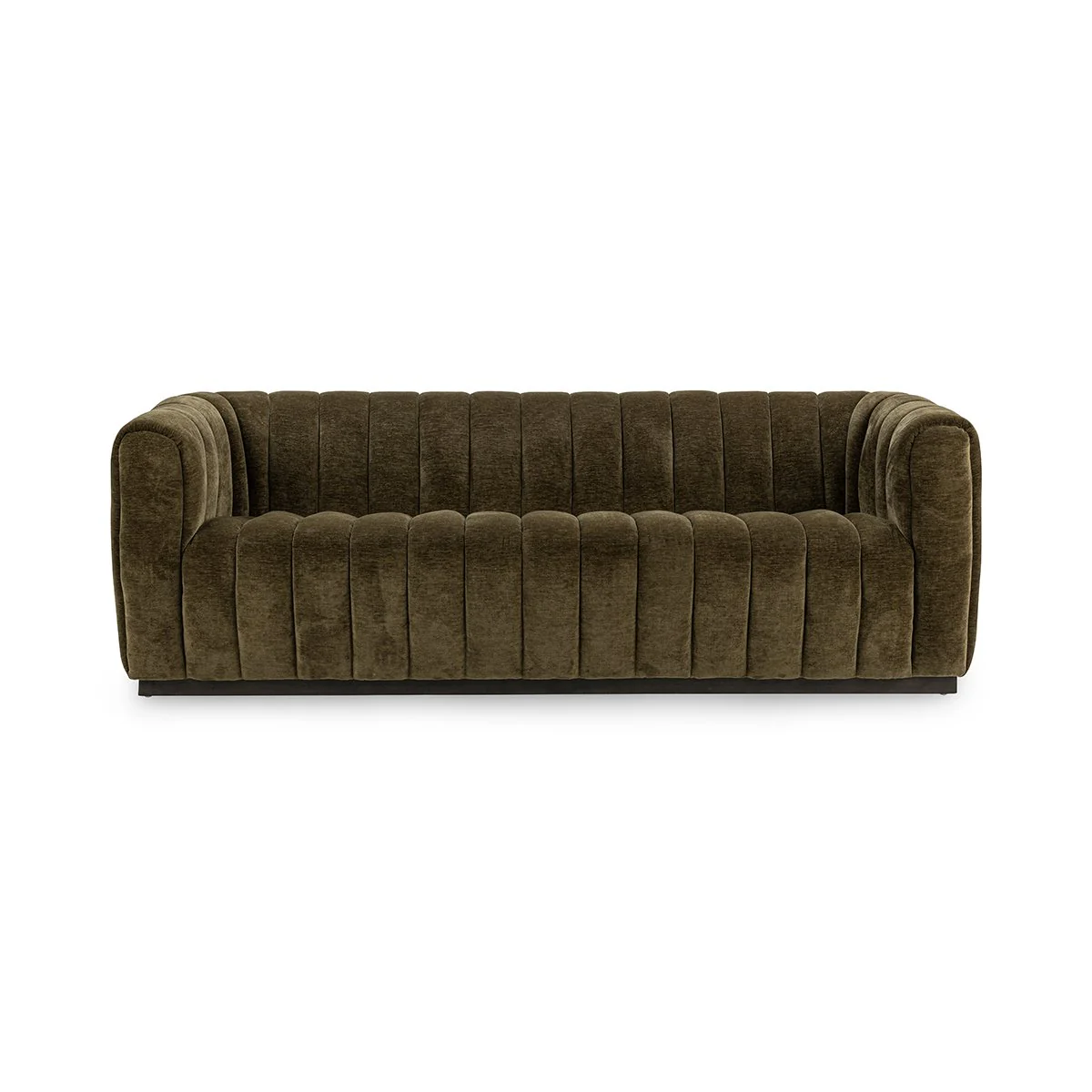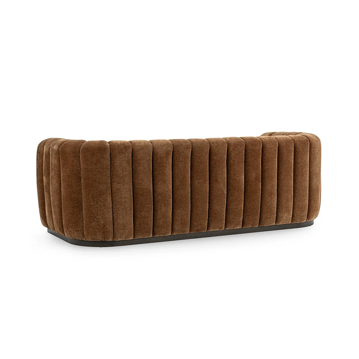 With its richly textured channel tufting and low-profile silhouette, this sofa commands attention in any space. Upholstered in plush velvet, its structured form is softened by generously padded arms and backrests that create an inviting and cocooning effect. The deep seat offers unmatched comfort, while the vertical stitching adds dimension and refinement. A perfect blend of vintage glamour and contemporary boldness.