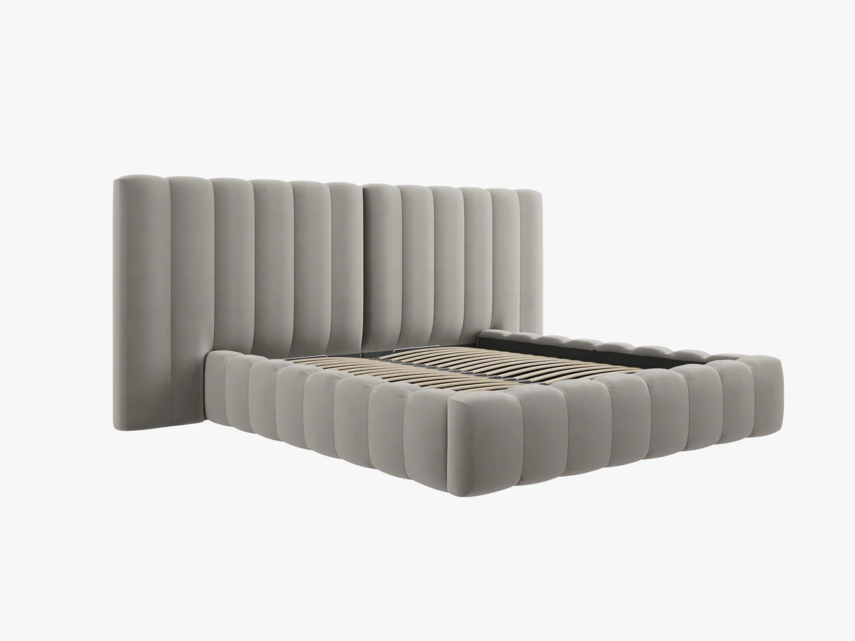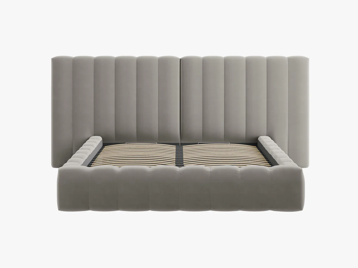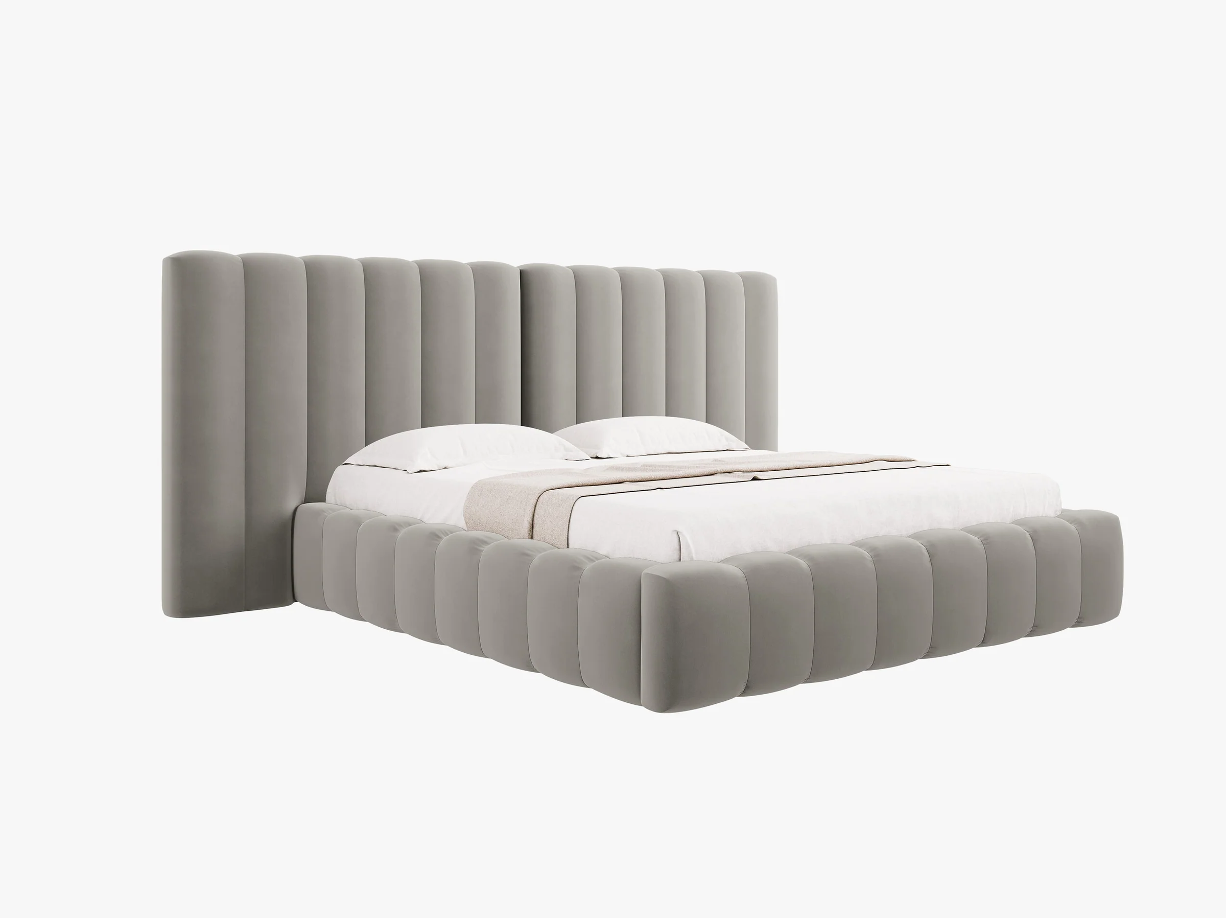 With its sculptural form and striking stitched detailing, this bed brings a distinctive presence to any bedroom. The plush, foam-padded headboard offers exceptional comfort and support, while the soft, tactile fabric enhances its inviting appeal. Designed to create a warm, restful atmosphere, it’s the perfect choice for those who value both standout style and a truly comfortable night’s sleep.