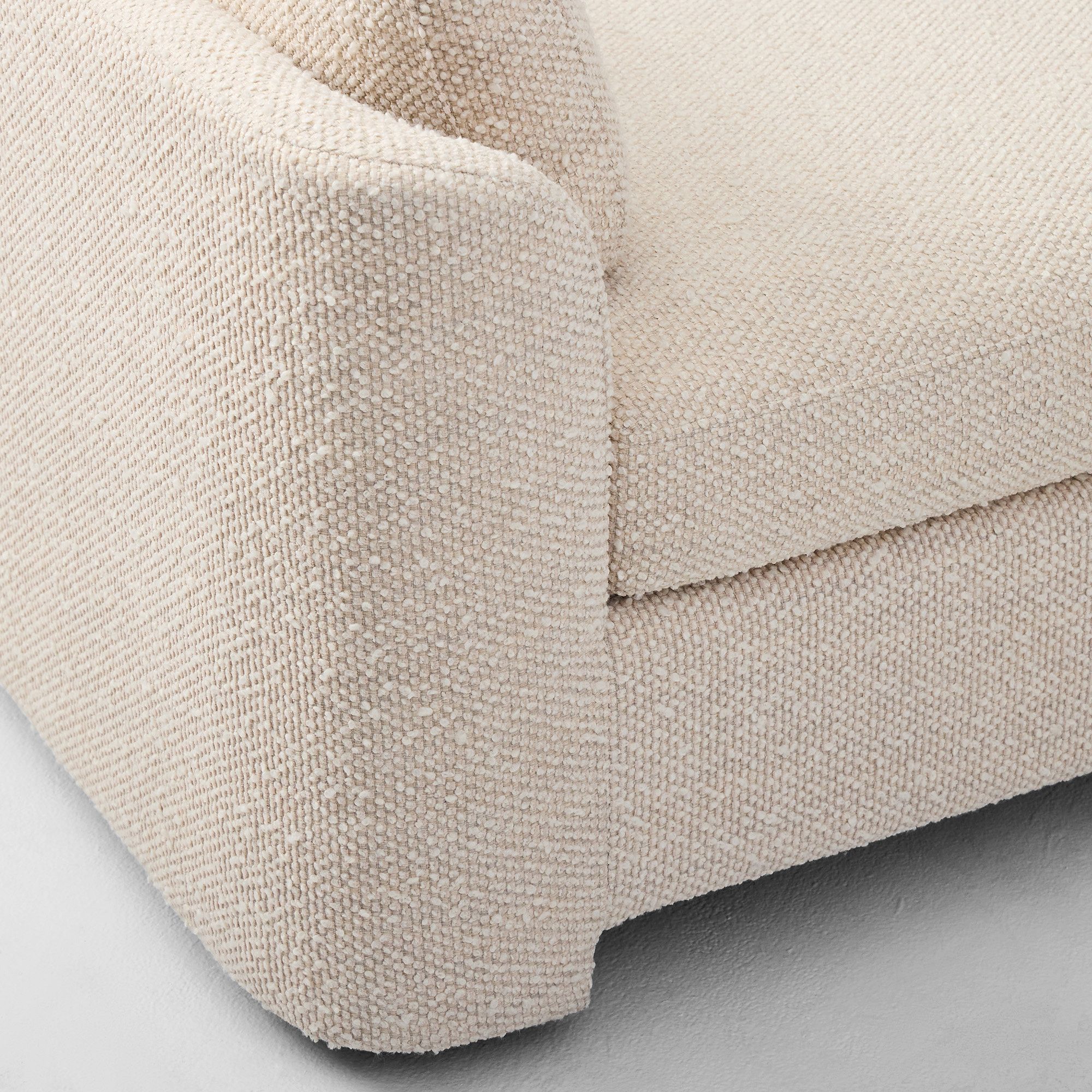 This elegant chaise features a sleek bench-style seat framed by low, softly curved armrests and matching loose cushions at each end. Its clean, minimal silhouette and plush texture make it the perfect piece for lounging in a bedroom, living area, or reading nook. A refined blend of comfort and contemporary design.